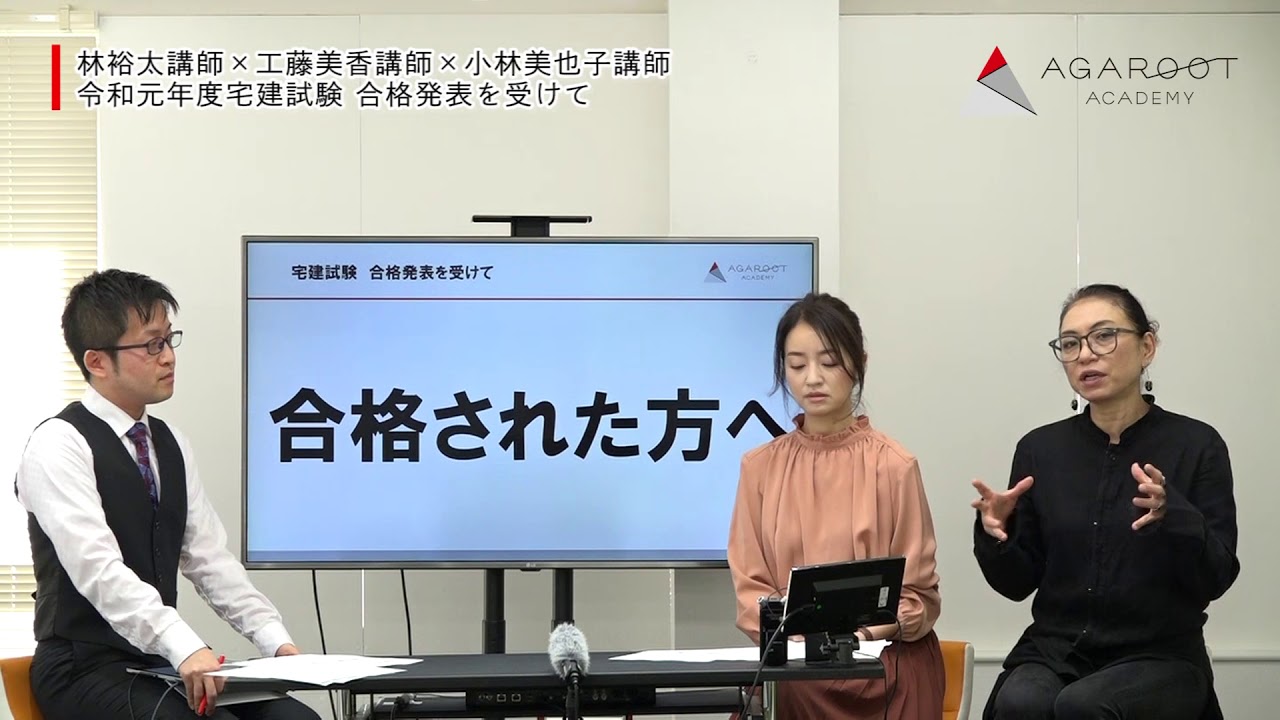【動画】令和元年度本試験 合格発表を受けて 林裕太講師×工藤美香講師×小林美也子講師|アガルートアカデミー宅建士試験