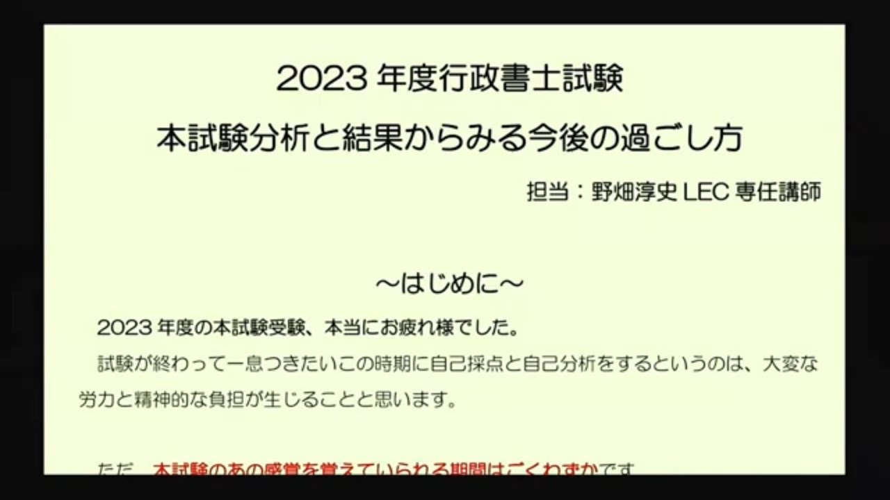 【動画】LEC行政書士講座、横溝慎一郎先生の「解答速報会」