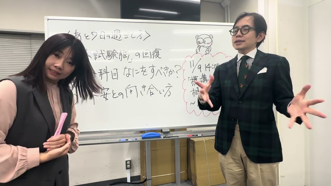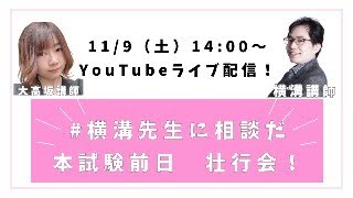 ここでLEC横溝、大高坂愛子先生の解説『【LEC行政書士】本試験まであと3日 「前日・当日の注意点とは」横溝先生とあいこ先生より』。
