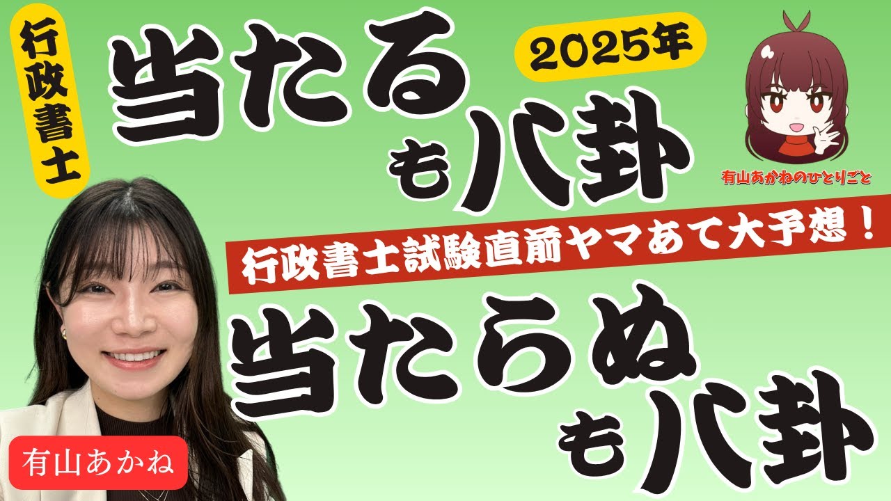 【動画】【2025年行政書士試験 大胆予想!】有山あかねの当たるも八卦当たらぬも八卦!(有山あかねのひとりごと)