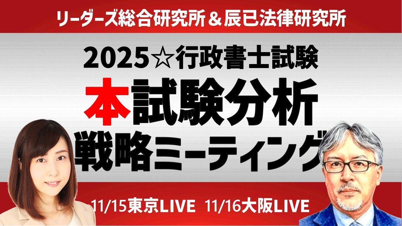 【動画】<11/13(木)19:00~>2025(令和7)年度 行政書士 本試験分析会 1日目
