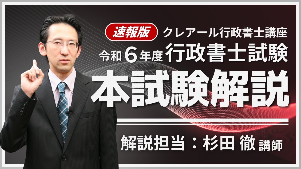 クレアール行政書士講座では11月10日(日)21時から杉田徹専任講師による「速報版解答解説」の動画配信をスタート。また並行して解答速報も公開します。クレアール行政書士講座はこちら
