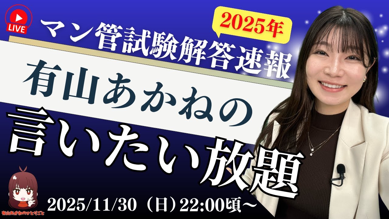 【解答速報ライブ】【マン管】解答速報!言いたい放題【マンション管理士】2025/11/30、22時ごろに公開予定