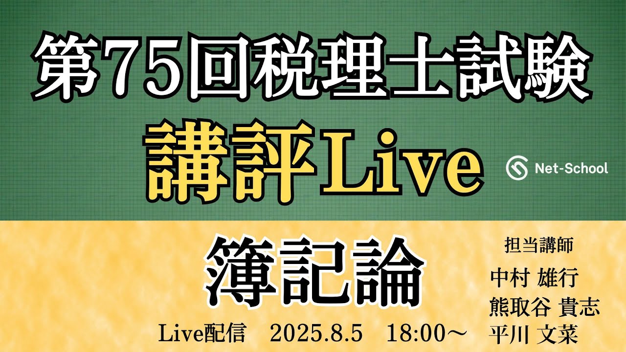 ネットスクール税理士講座では会計科目(簿記論および財務諸表論)、税法科目(消費税法・相続税法・法人税法)の解答速報会を実施します。また講評動画の公開も。