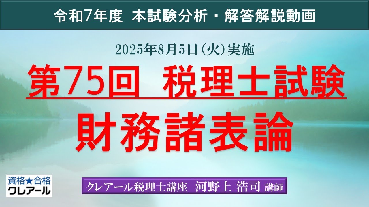 クレアール税理士講座・河野上浩司先生による「財務諸表論の解答解説」