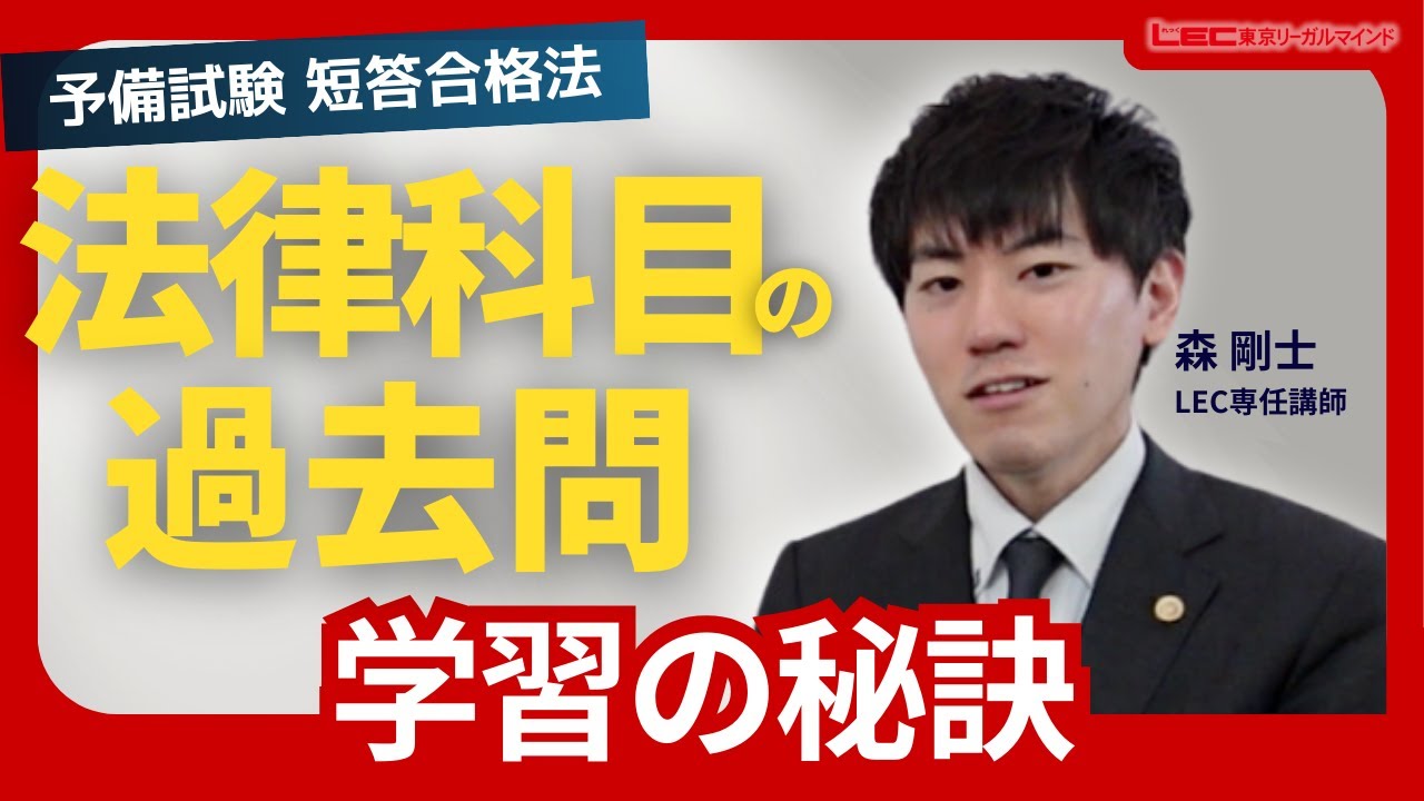 「【予備試験 短答合格法】法律科目の膨大な過去問をどうこなす?【LEC予備試験】」。LEC司法試験講座の実力派講師・森講師が、予備試験の短答式対策を動画で解説。科目別の出題傾向、学習法などについて。